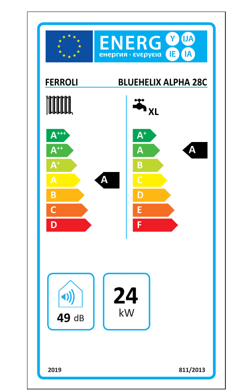 • Rango de modulación 1/7. La caldera de gas mural BLUEHELIX ALPHA de Ferroli puede arrancar con demandas 7 veces más pequeñas que su potencia nominal. Fundamental para pequeñas demandas de calefacción en periodos de entretiempo.