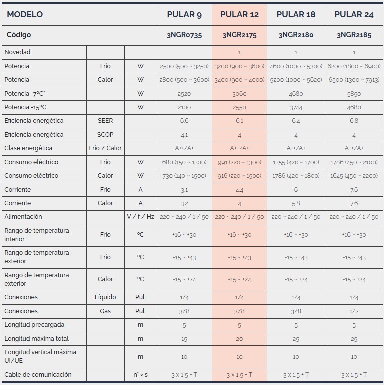 ✅ Hasta 3 metros de tubería frigorífica, cable eléctrico y desagüe.