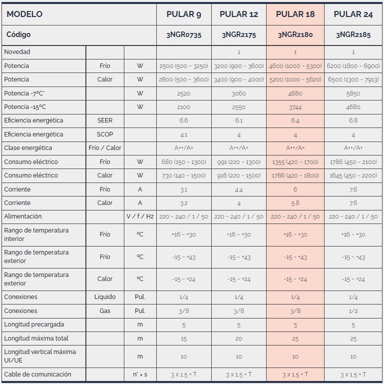✅ Hasta 3 metros de tubería frigorífica, cable eléctrico y desagüe.