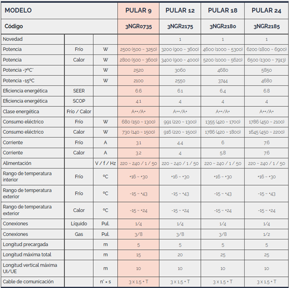 ✅ Hasta 3 metros de tubería frigorífica, cable eléctrico y desagüe.